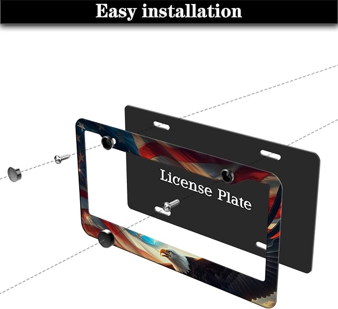 Automotive Exterior Accessories Multicolor License Plate Frames American Flag Eagle Aluminum Metal Car Accessory 2 Pack with Screw Covers Set
