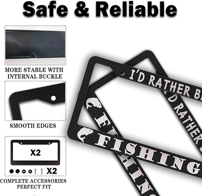 Automotive Exterior Accessories Black and White License Plate Frames I'd Rather Be Fishing Universal Aluminum Car Accessory 2 Pack with Screw Covers Set