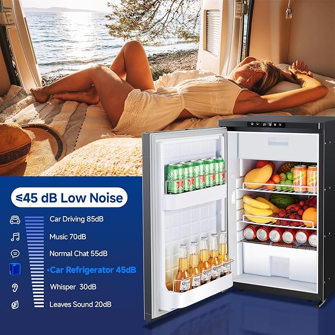 - Professional & Powerful Compressor: BODEGA RV Mini Refrigerator can be a fridge (74.35L) and freezer (8.65L) simultaneously! It can chill down to 4 °F using powerful compressor cooling technology, from refrigeration to freezing. Adjust the freezing or refrigeration range of the car refrigerator from -4℉ to 46℉ as needed. This portable refrigerator and freezer is a good choices for outdoor activities such as camping, picnics, road trips, and more. RV refrigerator to accompany you on your journey