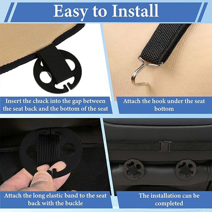 - Firm Installation: The front car seat cover has non-slip gel on the bottom, and also equipped with two metal hooks and two chucks, easy to install, which ensures that the seat cover is firmly fixed on the seat, not easy to slide, and improve the stability of use