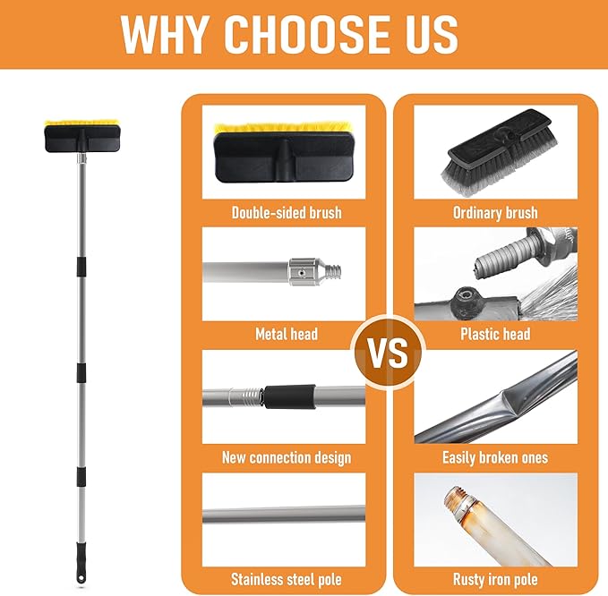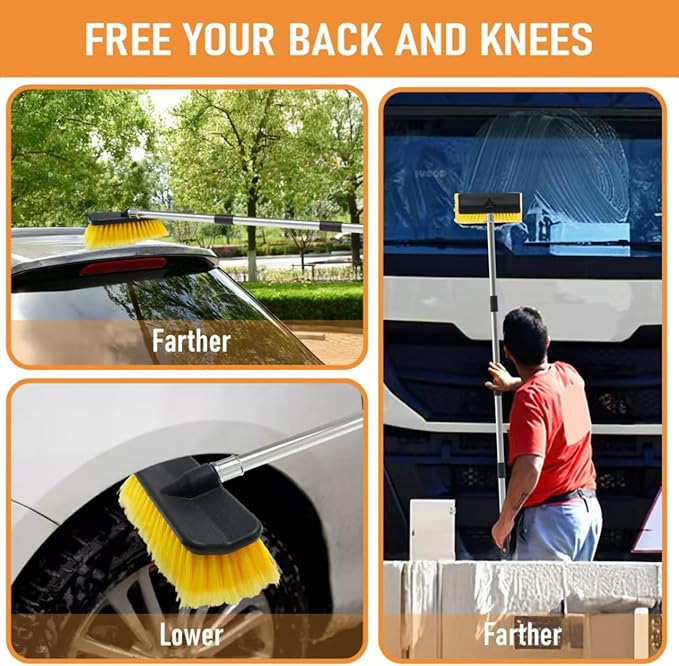 - 【Upgrade brush head】Compared to ordinary car wash brooms, The brushing head is V-shaped and widened. It can clean a larger area than other brush heads and is suitable for uneven surfaces.