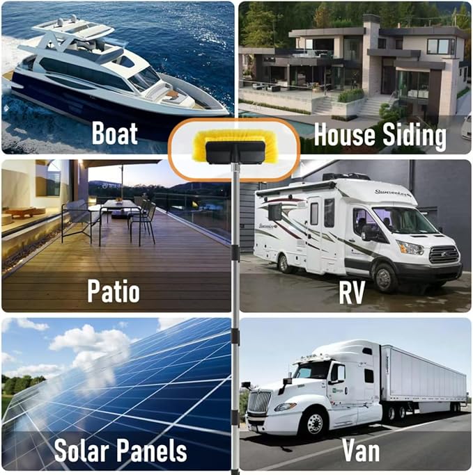 - 【Multi-Purpose for Incredible Value】In addition to car, boat, solar panel, house siding washing, the brush head can also help you remove snow or water from stubborn areas in winter. The snow broom's mane is thick and soft. You can quickly remove snow while protecting your car's paint.