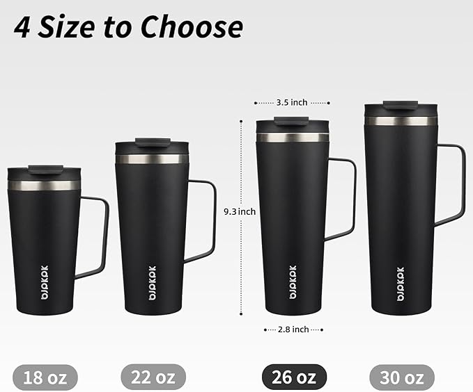 BJPKPK Insulated Tumbler with Handle, 26oz Insulated Tumblers with Lid and Straw, Stainless Steel Metal Water Bottles, Coffee Travel Mugs, Cups, Black