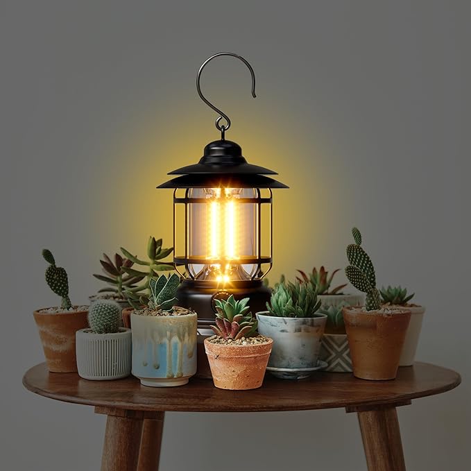 - 【Retro Style Design】The led lantern is compact and elegant and it adopted the latest COB bulbs, exude warm light and 360° lighting and create a cozy ambiance at night. Our camping lights will bring a warm and brighter to your patio, garden, tent, outdoor and indoor