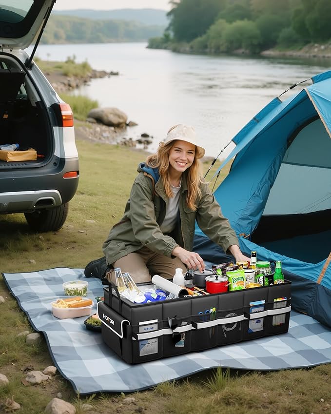 - WIDE APPLICATION: With its sturdy design and multi-compartment layout, the HOTOR car trunk organizer is versatile enough for various settings. Just use the organizer to keep your car trunk neat, organize groceries after shopping, pack essentials for a weekend camping adventure, or tidy up garages at home. It's a must-have car accessory for all car owners.