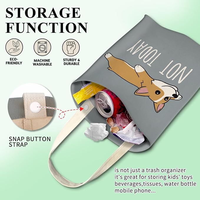 Cute Blue Corgi Car Trash Bag, Organizer & Storage, 5L, Anti-Slip, Painted, Rectangular, Whimsical/Cute, Car Trash Can