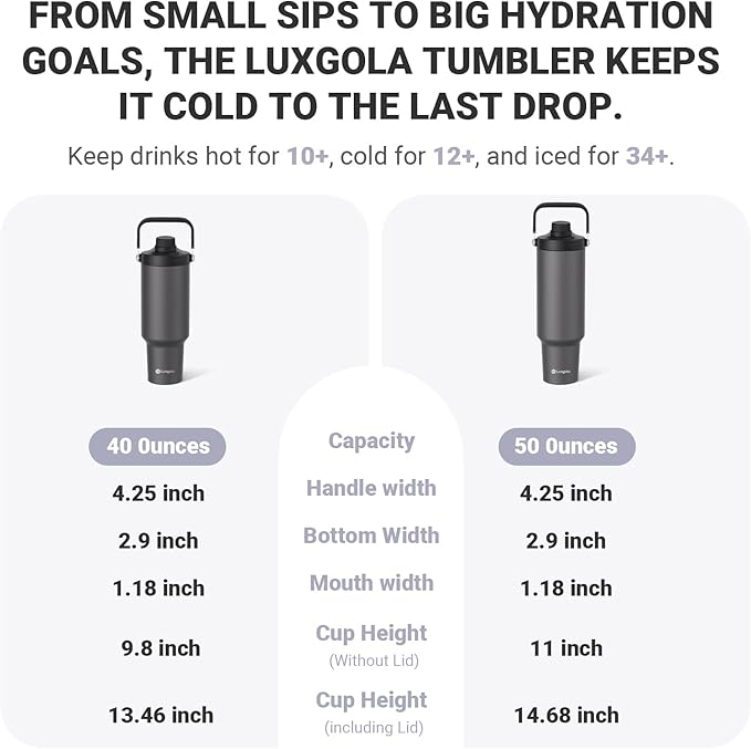 - Premium Insulation and Durability: This 40 oz stainless steel cup has double-wall vacuum insulation, keeping drinks hot for 10+ hours, cold for 12+, and iced for 34+. Its sturdy, sweat-proof design ensures reliability for daily use and outdoor activities