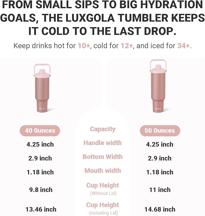 - Premium Insulation and Durability: This 40 oz stainless steel cup has double-wall vacuum insulation, keeping drinks hot for 10+ hours, cold for 12+, and iced for 34+. Its sturdy, sweat-proof design ensures reliability for daily use and outdoor activities