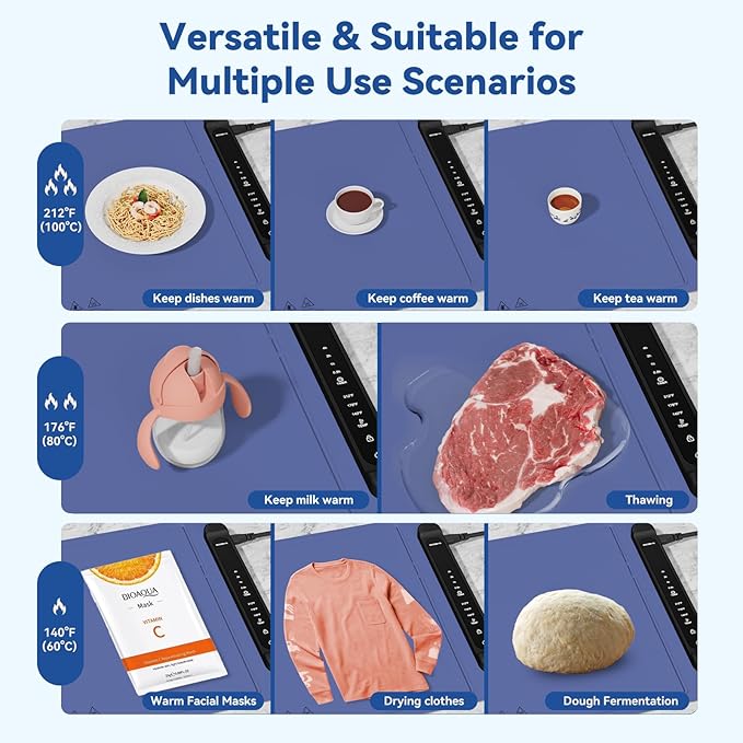 - Multifunctional Gift for Any Occasion: ZCJSHX versatile kitchen essential makes a unique and thoughtful gift for parents, grandparents, children, and loved ones. From keeping dishes warm for daily meals to proofing dough, defrosting frozen foods, and catering to various celebrations such as Ramadan and Sabbath, ZCJSHX warming mat meets your year-round needs. If you encounter any issues during use, please contact us through Amazon, and we’ll provide the most suitable solution.
