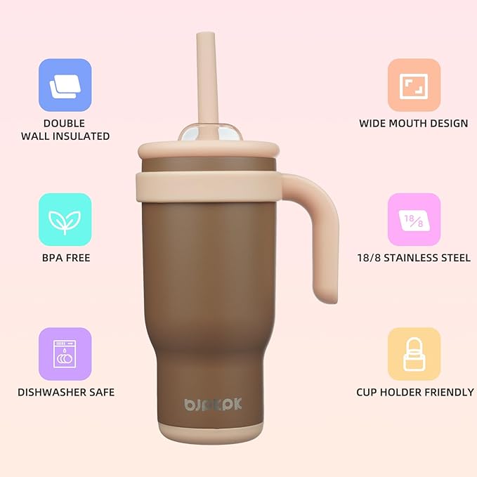 - High Quality and Safe Material: This BPA-Free insulated tumbler with handle is equipped with a straw and made of premium 18/8 food grade stainless steel, doesn't retain flavor and easy to clean, adopt double walled vacuum insulation design keeps your drinks hot 12 hours or cold 24 hours