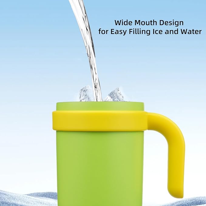 - Wide Mouth Water Bottle: The wide mouth design makes this insulated tumbler easy to add drinks and ice cubes, the bottom is covered with plastic for anti-scratch and less noise, the bottle size is cupholder friendly, also easy to carry with the wide handle
