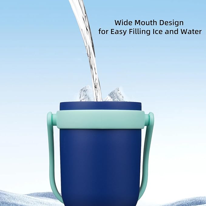 - Wide Mouth Water Bottle: The wide mouth design makes this insulated tumbler easy to add drinks and ice cubes, the bottom is covered with plastic for anti-scratch and less noise, the bottle size is cupholder friendly, also easy to carry with the wide handle
