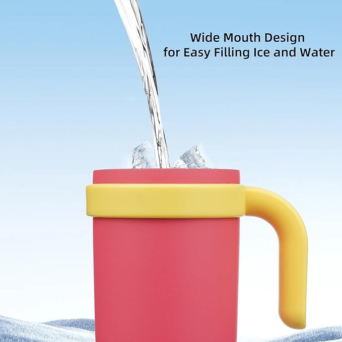 - Wide Mouth Water Bottle: The wide mouth design makes this insulated tumbler easy to add drinks and ice cubes, the bottom is covered with plastic for anti-scratch and less noise, the bottle size is cupholder friendly, also easy to carry with the wide handle