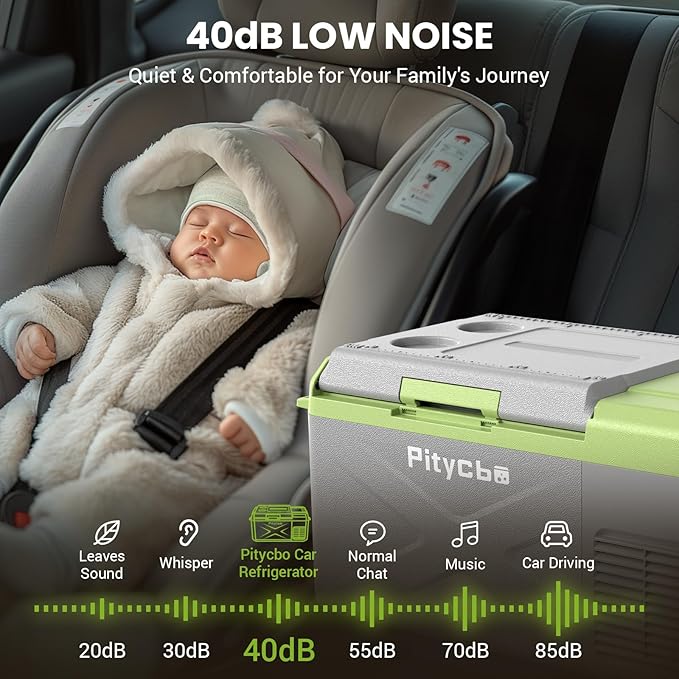 - Low Noise and Anti-Shaking: Our 12v fridge is as low as 40dB, running quietly, even if you are driving late at night or camping for a nap, it won't disturb your sleep. Say goodbye to start-up and bumpy noise, leaving only freshness and tranquility, making every journey comfortable and pleasant; Equipped with advanced anti-vibration technology, fearless off-road challenges, even if the road is tilted to the extreme angle of 30 °, but still ensure that the refrigerator is running steadily!