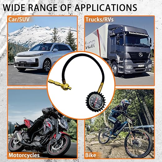- COMPLETE TIRE SERVICE KIT – More than just a gauge, it’s your all-in-one tire maintenance solution. The package includes a professional air chuck, four solid valve cap, and a handy valve core tool – everything you need to accurately measure, adjust, and maintain tires on cars, trucks, bikes, RVs, and more.