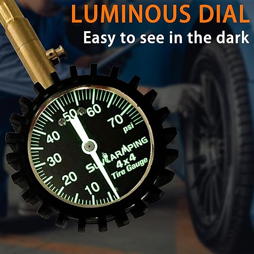 SUVCARMPING 100 PSI Tire Pressure Gauge Accurate Air Pressure Gauge (±1%), for Tires with Large Glow Dial, Valve Cap and Valve Core Tool, Black