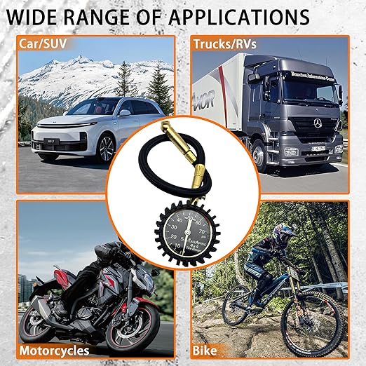 - COMPLETE TIRE SERVICE KIT – More than just a gauge, it’s your all-in-one tire maintenance solution. The package includes a professional air chuck, four solid valve cap, and a handy valve core tool – everything you need to accurately measure, adjust, and maintain tires on cars, trucks, bikes, RVs, and more.