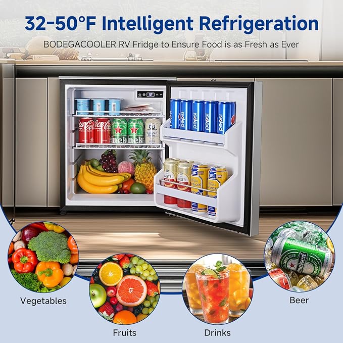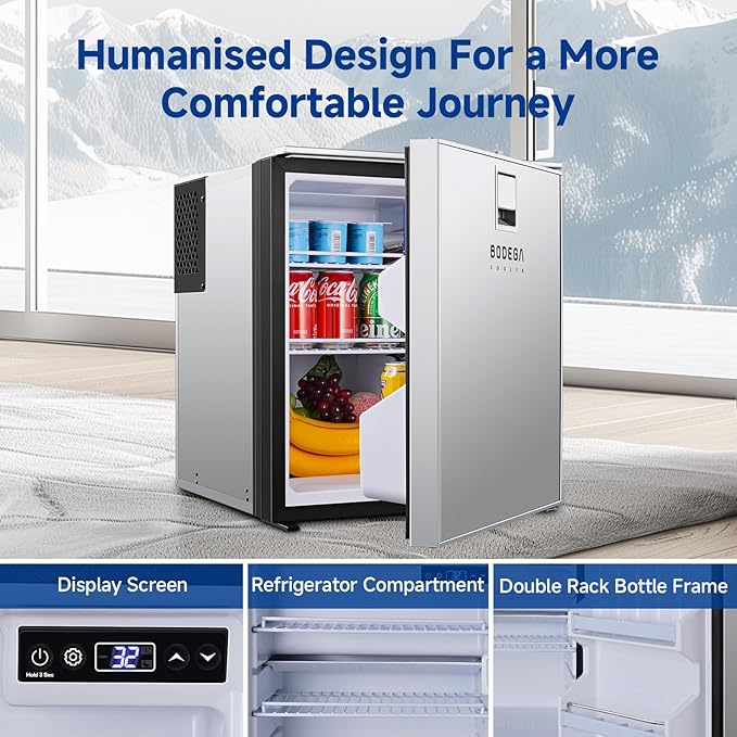 - Professional & Powerful Compressor: BODEGACOOLER 60L RV Mini Refrigerator is equipped with a powerful compressor, which allows for faster cooling! Adjust the freezing or refrigeration range of the car refrigerator from 32℉ to 50℉ as needed. This portable refrigerator and freezer is a good choices for outdoor activities such as camping, picnics, road trips, and more. RV refrigerator to accompany you on your journey