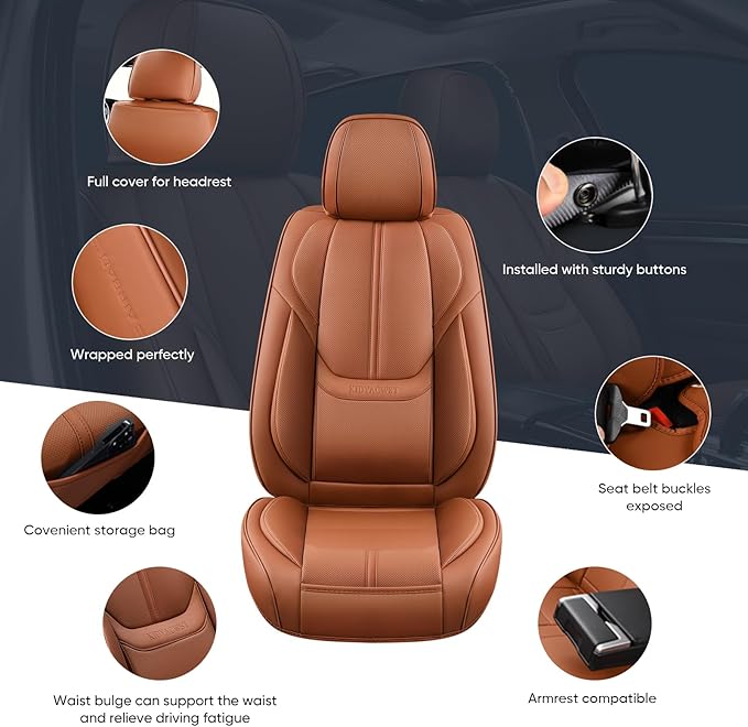 - 【Maintain Functionality】: The waterproof seat covers are engineered around the car, keeping the seat's full function and control, such as airbag, seatbelts, armrests and seat adjustments. Separate headrest covers allow easy headrest adjustment for optimal comfort and safety.
