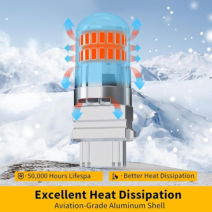 - 【Energy-Efficient & Long-Lasting】The Yorkim 3156 LED bulb operates at just 4.2W—only 1/4 the energy consumption of stock bulbs—while delivering 5X brighter light. Built with aviation-grade aluminum for superior heat dissipation, it lasts over 50,000 hours, making it an ideal upgrade for automotive lighting.