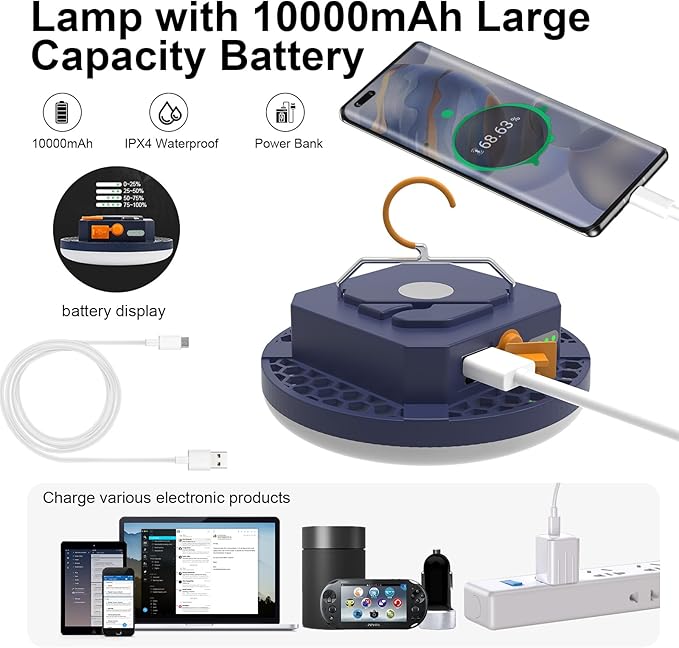 - 🌞 Portable Charger: Featuring USB power support and a large 10,000mAh capacity, this lantern can charge your mobile phone or tablet at least twice during emergencies.
