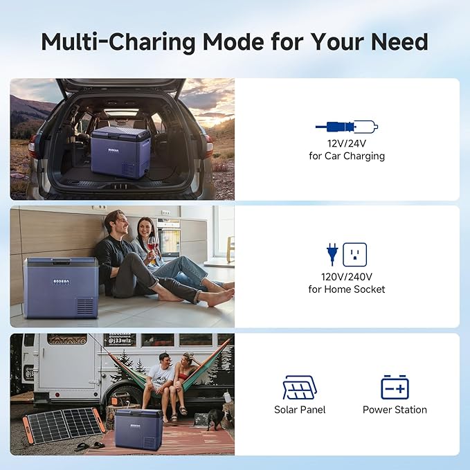- ใ๐๐ถ๐ ๐ง๐ฟ๐ถ๐ฝ๐น๐ฒ ๐ฃ๐ผ๐๐ฒ๐ฟ: ๐๐/๐๐/๐ฃ๐ผ๐ฟ๐๐ฎ๐ฏ๐น๐ฒ ๐๐ฎ๐๐๐ฒ๐ฟ๐ใ Versatile charging options! Compatible with 110V-220V outlets, 12/24V car sockets, and solar generators. BodegaCooler electric cooler works for camping, home, or emergencies.(Package included: 1*dc power cord, 1*ac power cord, 1*user manual)