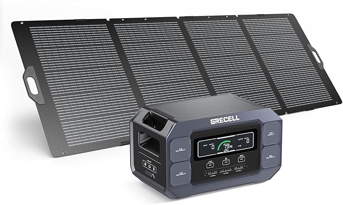 GRECELL Portable Power Station 1000W with Solar Panel 200W,999Wh Solar Generator with Panels Included, 60W USB-C PD Output, 110V Lithium Battery Pack Kit for Outdoor Camping Travel Home (Peak 2000W)