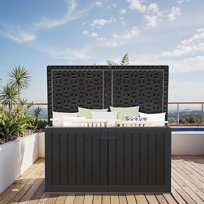 - Waterproof and Stylish Design: Constructed from high-quality resin, Greesum Outdoor Storage Box is waterproof and UV-resistant, making it ideal for outdoor use. Its simple vertical grain design adds a natural charm, perfect for your yard, garden, or by the pool, enhancing both functionality and aesthetics.