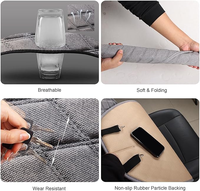 - Linen Material: Universal car seat cover for cars is made of durable and soft linen fabric, and the bottom of car seat covers are designed with anti-slip particles to increase stability, and reliability.