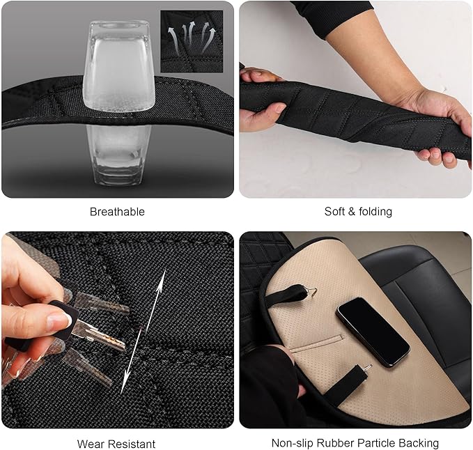 - Linen Material: Universal car seat cover for cars is made of durable and soft linen fabric, and the bottom of car seat covers are designed with anti-slip particles to increase stability, and reliability.