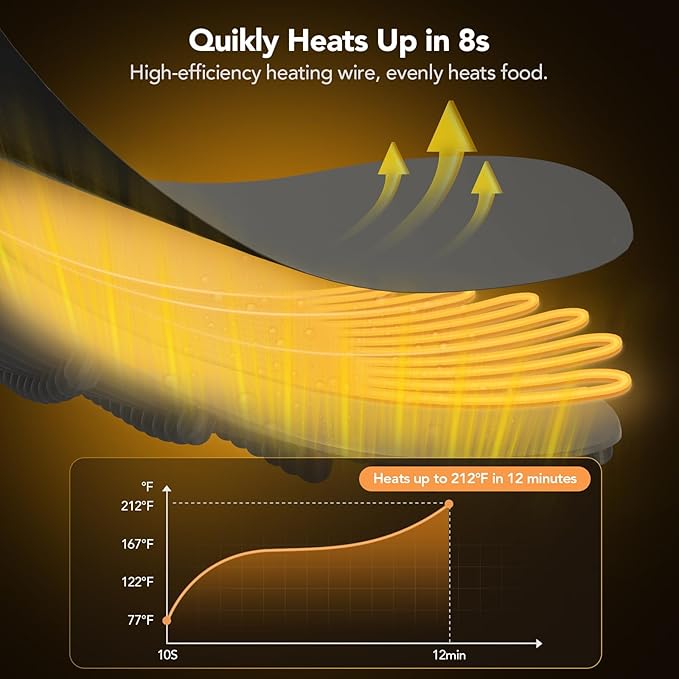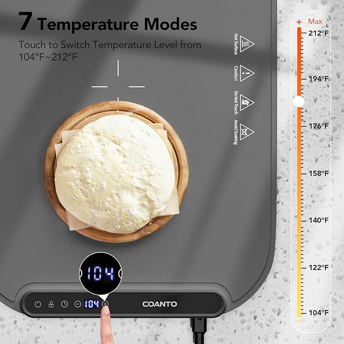 - [Customized Comfort] Dial in the perfect temperature with our 7-level temperature-controlled food warming mat. The 12-hour auto shut-off feature ensures convenience and caters to a variety of food preferences for a smooth dining experience