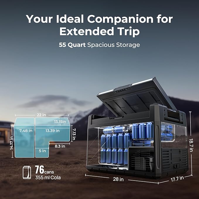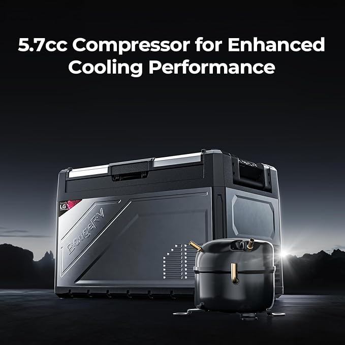 - Capable of Reaching -4℉ Even at 109℉ Ambient Temp: Using a 5.7cc compressor, the Rocky V2.0 55 quart portable refrigerator can cool down to -4℉ even in an ambient temp of 109℉, ensuring that frozen goods stays as fresh as possible even in hot environments and let you have a better outdoor experience