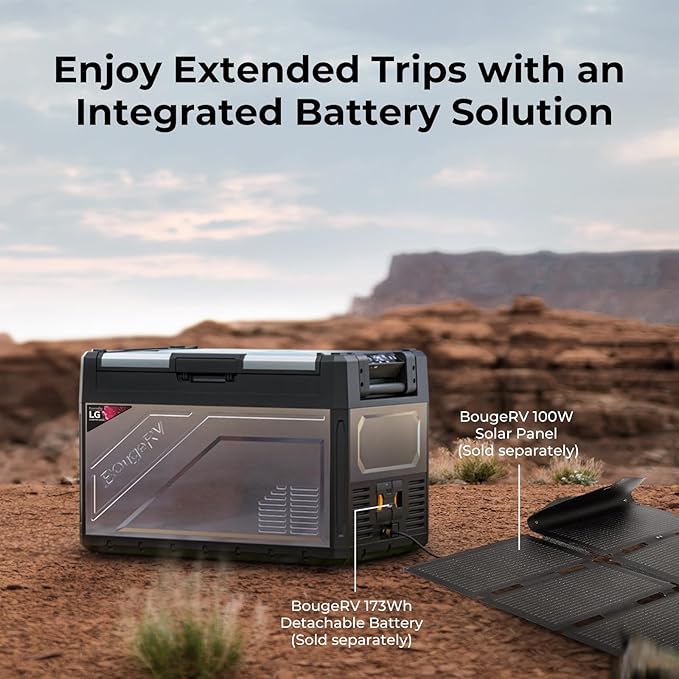 - APP Control: You can control the temperature settings, mode switching or turn on/off the portable freezer through the BougeRV App without having to manually adjust it by walking over to it, allowing you to monitor its operating status at any time. Distance Limit: 32ft