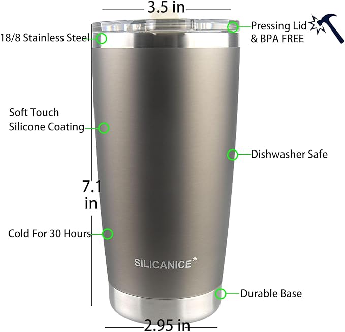 - 100% BPA-Free:The Durable Silicone Coating Scratch Resistant,Dishwash Safe For More Than 1000 Times,No Freezing Hands,No Dew Design Make Sure Your Hands Stay Dry,Feels Soft Touch,Tritan Material Lid,Double-Wall Insulated Cup With High Quality 18/8 Stainless Steel.
