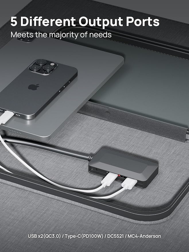 - 【High-Performance Solar Panel】It adopts industrial-grade monocrystalline silicon with a maximum sunlight conversion efficiency of 23%. The ETFE high-transparency encapsulation film has excellent light transmittance, is wear-resistant and lightweight, and the overall weight is only 19.9 pounds.