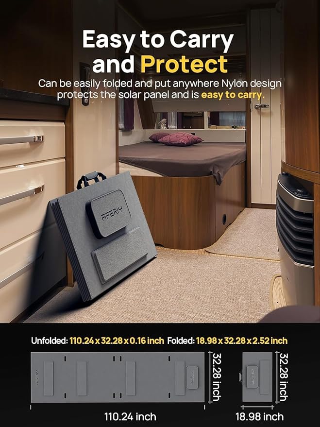 - 【AFERIY 400W Solar Panel】With 26.4V max output voltage, 15A max current, and 400W max power, it can fully charge the AFERIY 2400W portable power station in 6 hrs under full load.