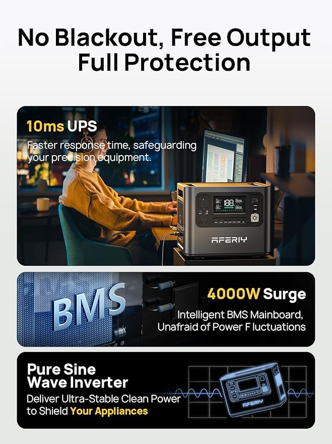 AFERIY Portable Power Station AF-P210 2048Wh | 2400W with 400W Solar Panel,AC Output with 120V,2400W,Solar Generator for Home Use,Outdoor Camping,Power Outage, Camping,Emergencies