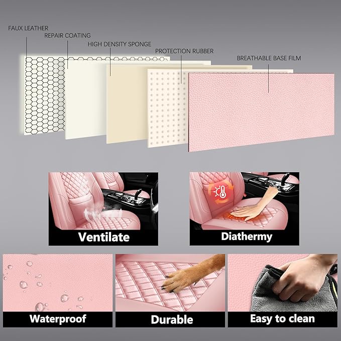 - 【What’s in the package?】The Pink seat cover full set includes 【both front and the rear seat covers for 5 seats】,【1 pack of installation accessories】 and 【1 pack of installation paper】.Please check all the stuffs when you get the package.