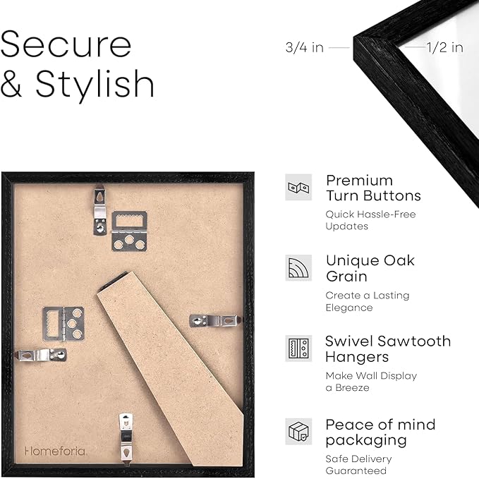 Homeforia 8.5x14 Marriage License Frame Black, High End Oak 8.5x14 Certificate Black Wood Frames, 8.5by14 Wooden Frame for Wall & Tabletop, 8.5 by 14 Picture Frames, Tempered Glass, Wall Kit, Set of 1