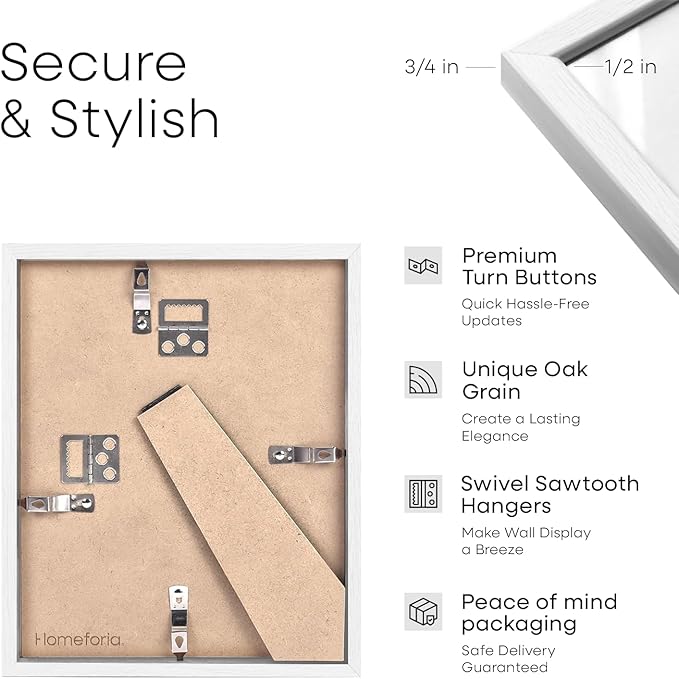 Homeforia 8.5 x 11 Diploma Frame White Wood, High End Oak 8.5x11 Certificate Frames, 11x8.5 Document Frames for Wall or Tabletop, 8.5 by 11 Award White Wooden Frame, Tempered Glass, Wall Kit, Set of 1