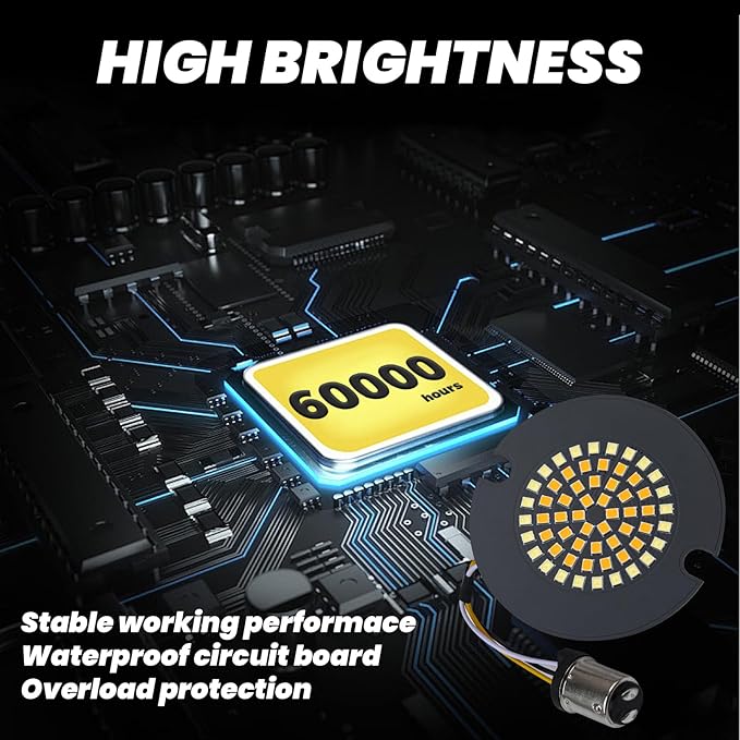 - BRIGHTNESS LED LIGHT - Turn signal, brake and running light combo kit built in 60 Pcs SMD LED, feature with lower power consumption, 400% brighter than halogen bulbs with wider range illumination makes you were more easier noticed while riding on the road