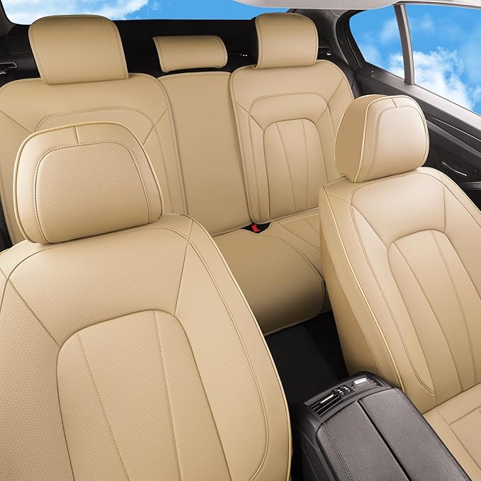 Car Seat Covers Full Set,Breathable and Waterproof Faux Leather Automotive Seat Covers for Cars,Luxury Universal Fit Seat Covers for SUV, Sedans and Trucks,Beige