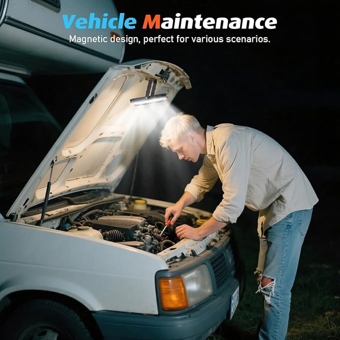 - 360° Hook & Strong Magnetic Base - The 360° hook design allows the camping lantern to be hang on objects such as tents. Our rechargeable camping lights comes with Built-in strong magnet, which make it can be firm stay on car, track or any other metal surface for use as working lights.