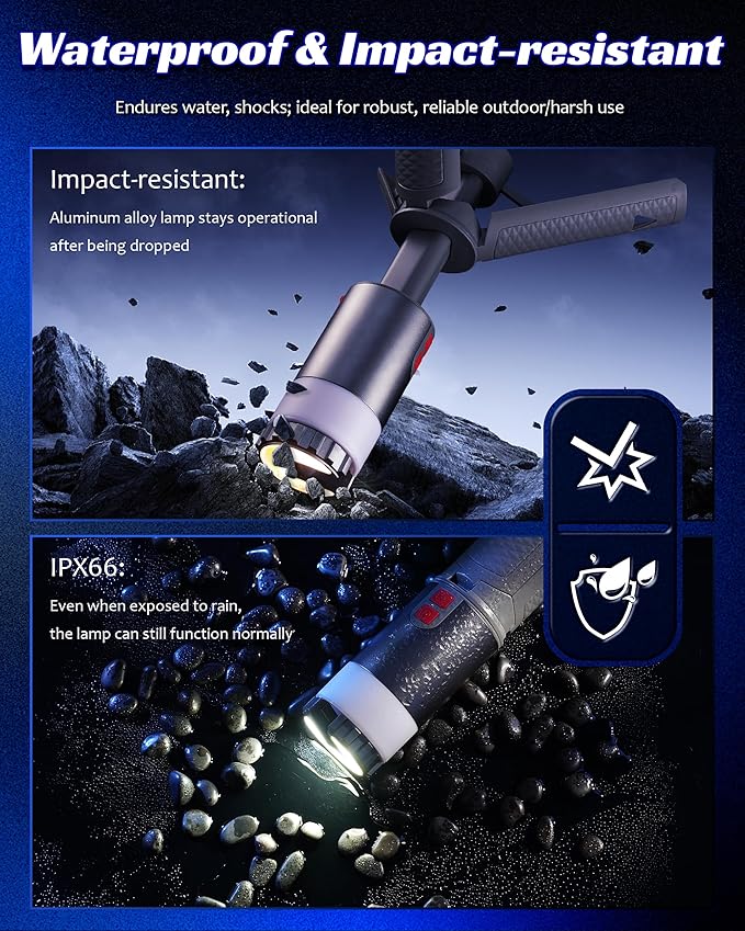 - IPX4 Water-Resistant & 1.5m Drop-Proof: Crafted from anodized aircraft-grade aluminum and ABS/PC materials, this rechargeable camping light features a robust housing offering 4.9ft (1.5m) impact resistance. Its IPX4 waterproof rating ensures reliable operation even in harsh weather conditions.