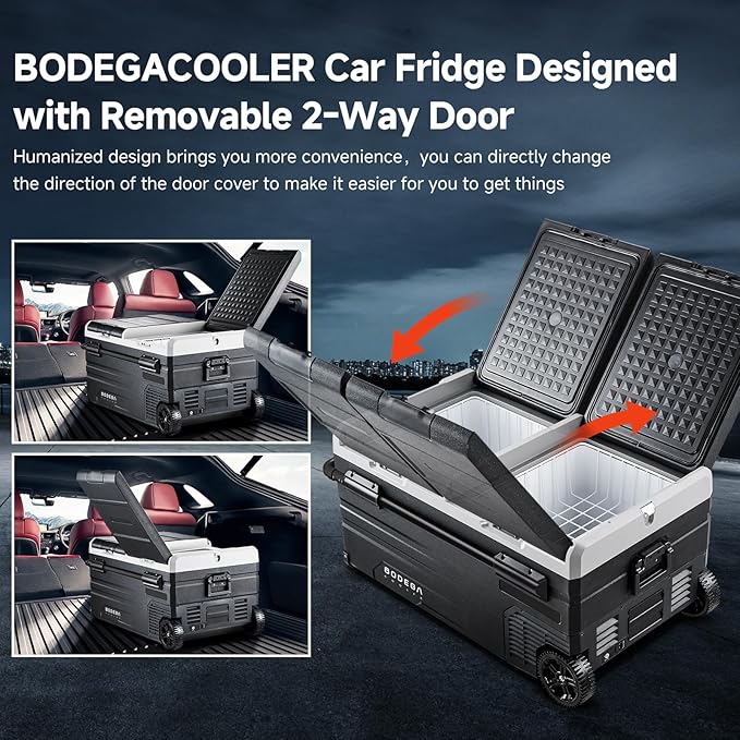 BODEGACOOLER 12 Volt Car Refrigerator, 100 Quart Portable Freezer, Car Fridge Dual Zone WIFI APP Control, -4℉-68℉ Cooler, 12/24V DC and 100-240V AC, for Travel, Camping, Outdoor,RV, black