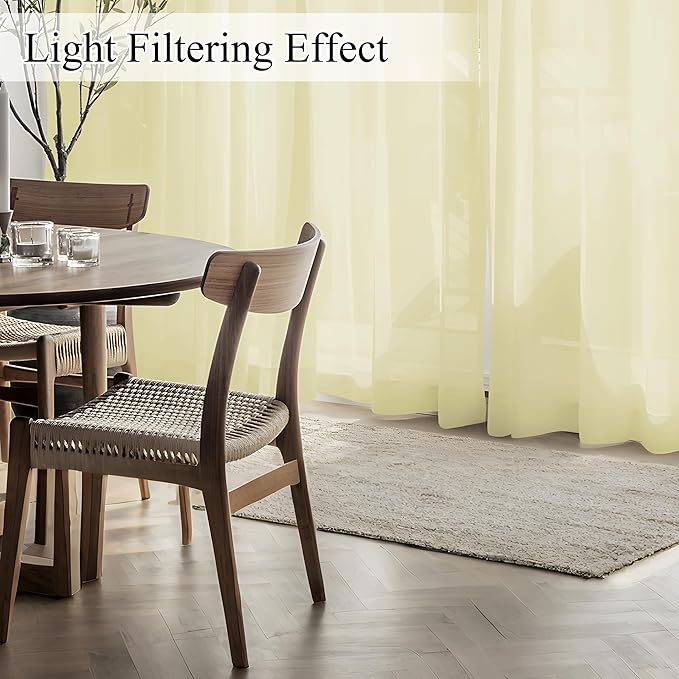 - Privacy Protection: Enough light filtering but perfect people hiding. This curtain can do both effect- on the one hand, sheer curtains allow sundhin pour in. One the other hand, they prevent people from being seen what you are doing.