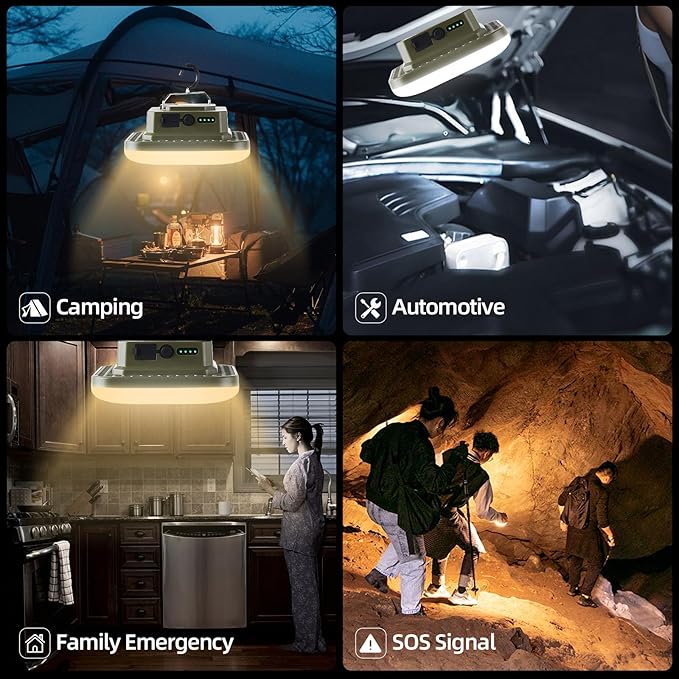 - Innovative Square Design with Enhanced Portability: The square shape offers a modern aesthetic while the built-in hidden hook and magnetic base provide versatile mounting options. Hang it in your tent or attach it to metal surfaces for hands-free convenience during your camping adventures.