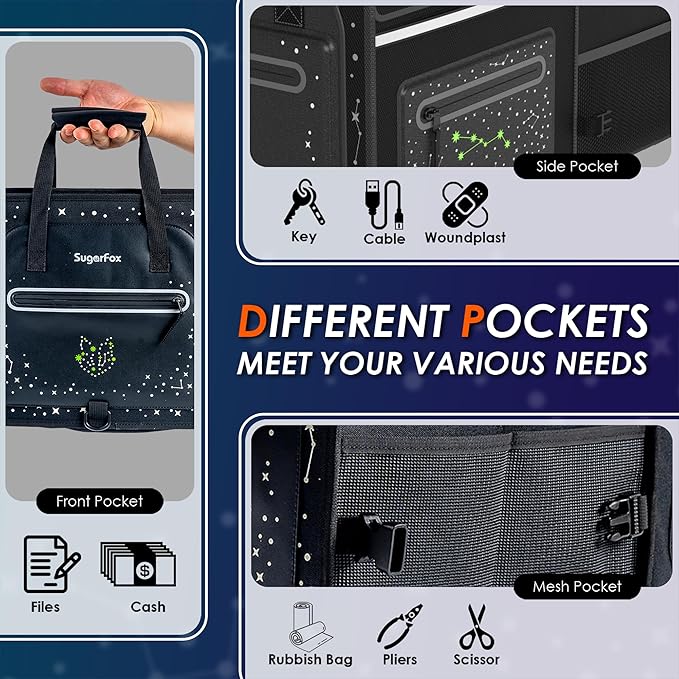 - 【Glow-in-the-Dark Fox Constellation Design】Exclusive celestial fox pattern glows softly in low light, adding whimsy to night drives or camping trips. Easily locate the organizer without bright lights, blending style with practicality.
