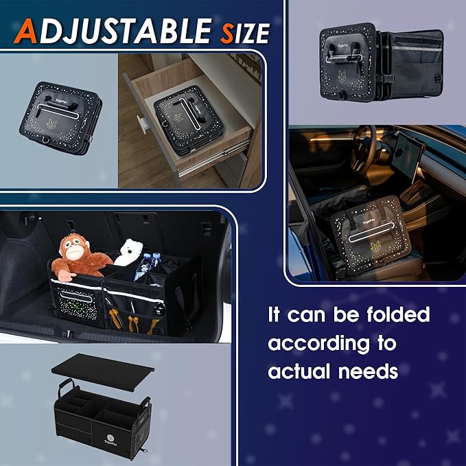 Car Trunk Organizer & Storage | 63L Capacity, 23.6"×13.8"×11.8" | Fluorescent Constellation Design | Waterproof, Collapsible with Adjustable Straps | for SUV, Small/Midsize Cars - Black-M004