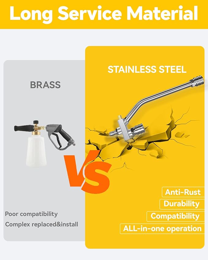 - 【DUAL-PURPOSE LANCE】Two way valve control to switch the water flow and foam without changing nozzles, saving your time. Made in stainless steel, antirust and durable.